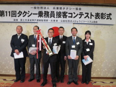 兵庫県タクシー協会(吉川紀興会長)は第11回目を迎えた接客コンテストを2月19日、 生田神社会館で開催。神戸、姫路予選を勝ち抜いた12名の乗務員によって競技が行われ、 最優秀賞に阪神タクシーの鈴木昭彦氏(38歳)が輝き、兵庫県知事賞、神戸運輸監理部長賞、兵庫県タクシー協会会長賞を受賞。岡田研二兵庫陸運部長より賞状と記念品(10万円) が贈られた。