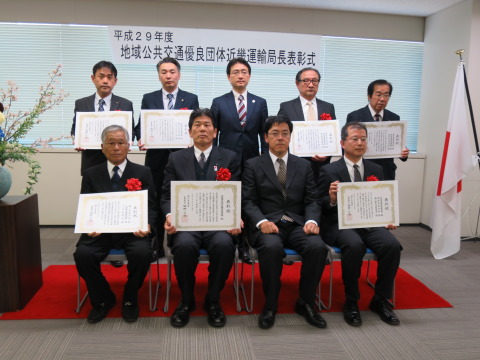 近畿運輸局(坂野公治局長)は、地域公共交通の確保・維持に積極的に取り組み、顕著な功績のあった団体を表彰する「近畿運輸局地域公共交通優良団体表彰」を創設し、3月15日、大阪府合同庁舎4号館近畿運輸局第三会議室で平成29年度近畿運輸局地域公共交通優良団体表彰を行った。平成29年度は3者を表彰。
