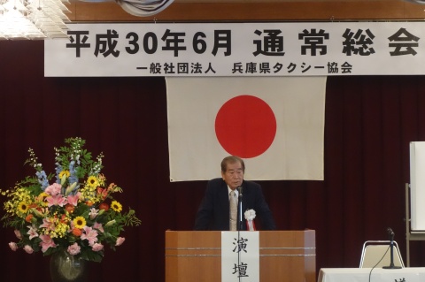 吉川会長は冒頭あいさつで「乗務員不足や高齢化の中で、稼働率については年々下がり、65%を切るような状況で、総営収も低下している。燃料価格や社会保険料の上昇などさまざまな問題があり、60%に近づいていっている」と厳しい状況について述べた。養父市でスタートした「やぶくる」について触れ、「NPO法人を立ち上げ、運行管理と安全管理はタクシー事業者が行うサービスとしてスタートした。2つの交通困難地域限定の実施で、道路運送法に抵触しない形でよく収まった」と会員の協力に謝辞を述べた。淡路島のUberアプリ導入については、「8月ごろ実証実験を行う予定になっている。これが良い方向に行き業界の発展に寄与することを期待している」と期待を寄せる一方で、「ライドシェアが容認されない方向で今後もやっていくが、いろいろな面で自治体と連携して力を合わせる必要がある」と述べ、慎重なかじ取りを求められている。再選にあたっては「もう1期2年、厳しい状況の中で、みなさんが力を合わせやっていかなければならない。消費増税を控えたこの1年が本当の勝負だと思っているので、みなさん頑張りましょう!」と呼びかけた。総会の終わりには「国民の安全を脅かすとともに地方創生の担い手である地域公共交通の存在を危うくする『ライドシェア』と称する白タク行為を断固阻止する決議」を採択した。 閉会で平尾副会長は「適正運賃の実現を最重点施策として取り組みたい」と新執行部の指針を示した。 栗原弥生・近畿運輸局自動車交通部長は来賓祝辞で「神戸市地域問題検討会で、地域課題や利便性の向上に向けて議論が進められているが、さらに議論を深めていただきたい。特に地方部においては、高齢化や人口減少にともない路線バスの減便や撤退が進む中、生活の足の確保が深刻な問題となっている。より一層地方自治体との連携を密にし、公共交通機関としてのタクシーの使命を果たしていただきたい」と求めた。その他の来賓から、中田博・兵庫県警察本部交通部交通企画課調査官、妹尾祐治・兵庫労働局労働基準部安全課長らが祝辞を述べた。