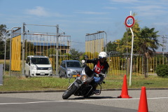 交通事故防止目指し、安全意識と技術を磨く 一般財団法人兵庫県交通安全協会(瀧川博司会長、以下、交安協)は8月25日、運転免許試験場(明石市)で第48回兵庫県二輪車安全運転競技会を開催した。 この競技会は二輪運転者の交通安全知識と運転技術の向上を図り、二輪車による交通事故防止に寄与することを目的としている。例年5月の開催だが、今年は会場となる運転免許試験場の改修工事などにともない8月開催となった。気温30度を超える猛暑日の実施となり、事務局からは熱中症への注意喚起や、飲物の配布などが徹底された。 排気量ごとにA(125cc以下)・B(400cc以下)・C(400cc超)の3クラスで実施。競技種目は所定コース内の法規走行と、スラローム・千鳥走行などの5課題の技能走行に分かれる。例年は成績優秀者から候補者を選び、全国大会に向け特別訓練を行っていたが、今年度全国大会が実施されないため選抜は行わないとのこと。 試験後には今大会の指導・審査にあたった兵庫県警察交通機動隊白バイ隊員に追従して試験場のコース内を走行するアトラクションが行われた。 Aクラスは西岡諒哉氏、Bクラスは濱(※1)崎勇治氏、Cクラスは林晃吉氏がそれぞれ優勝し、濱田純司・兵庫県企画県民部県民生活局交通安全室室長から賞状が、角(※2)田正文・交通企画課参事官兼交通企画課長からメダルがそれぞれ授与された。また、今大会最高齢参加者の山名順彦氏(65歳)には特別賞が贈られた。 各クラスの優勝・入賞者は下記の通り(敬称略) ▽Aクラス(125cc以下)<優勝>西岡諒哉、<2位>若藤清鷹、<3位>中原幸子 ▽Bクラス(400cc以下) <優勝>濱(※1)崎勇治、<2位>腰前圭司、<3位>吉川芳政 ▽Cクラス(400cc超)<優勝>林晃吉、<2位>池田史郎、<3位>笠波智加夫 ※1 正しくは「濱」の俗字 ※2 「角」は外字(真ん中の縦画が突き出る)