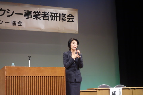 主催者挨拶で前野会長は、「個人タクシーが誕生し半世紀の月日が過ぎた。諸先輩たちの努力で評価を高めた個タク業界も、現在では法人に後れを取ることが増えている状況だ。個人タクシー独自の取り組みであるマスター制度の充実に重きを置き、日々研鑽、努力を怠らず、公共交通機関として利用者利便の増進に貢献することが、これからの業界の発展へつながる」と述べ、参加者の積極的な研修参加を促した。来賓を代表し、公務により欠席した成久博康・兵庫陸運部長に代わり岩野住之・同首席運輸企画専門官と、濱本民夫・全国個人タクシー協会近畿支部長がそれぞれ挨拶した。 その後、株式会社aimの米谷侑子・取締役社長が「タクシー乗務員の接遇マナー」と題し講演を行った。「接遇とは、相手が望むことをして差し上げること」と定義し、単に顧客と対面するのみにとどまらず、相手をもてなす気持ちを持って応対することが重要だと語った。笑顔や会釈、行先の復唱をはじめ、料金や領収書の受け渡し時の姿勢など具体的な模範行動を示し、会場に集まった事業者同士で実演を促す場面も見られた。 講演に続いて、マスター事業者コンテストが行われ、橋本茂則氏と田中元久氏の2名が参加した。コンテストはJR新神戸駅乗り場からポートピアホテルまでのコースを想定し、ロールプレイング方式で行われた。接客姿勢や身だしなみなど20項目が審査された。コンテスト後、先に講演を行った米谷氏は、両社の優れていた点を挙げつつ、「相手の年齢を意識した会話や、『恐れ入りますが』などのクッション言葉をもっと活用するなど、まだまだサービスを向上させる余地があると思う」と講評を述べた。なお、本日参加した両名の合否は後日連絡されるとのこと。合格した場合、11月に行われる同コンテストの近畿大会に出場する権利を得る。