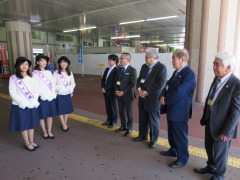 神戸市の「タクシーマナー向上推進会議」は10月3日、午前11時からJR三ノ宮駅や新神戸駅のタクシー乗り場で、乗客とコミュニケーションに役立つ神戸港への大型客船の入港スケジュールや神戸観光おすすめスポット等のチラシ―などをタクシードライバーに配布、タクシーマナー向上キャンペーンを行った。 当日キャンペーンに出動したのは、兵庫県タクシー協会の吉川紀興会長、五十嵐一俊・同副会長(タクシーサービスセンター長)、北倉道人・神戸個人タクシー協組観光部長、岩野住之・兵庫陸運部主席運輸企画官、市邊裕喜・神戸観光局観光担当部長、そしてこの日がデビューとなった牛尾未来さん、森下紗彩さん、酒井若葉さんのスマイル神戸(親善大使)も参加し、各乗り場で「笑顔で気持ち良いご挨拶を」と乗務員に呼びかけた。 また兵庫県タクシー協会の神戸、阪神間支部は、この日に合わせて各地域で街頭指導を展開、各事業所の担当者がタクシー乗り場を中心に接客を見廻った。 なお10月中旬から11月中旬にタクシーモニター調査を実施予定。