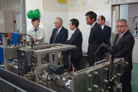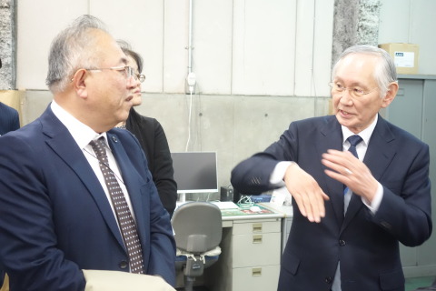 ![]() 写真左から、兵庫標板製作所 常務取締役統括部長 東淳平氏、八木一夫・近畿運輸局長、八木 貴弘・近畿運輸局交通政策部長、猶野喬・自動車技術安全部長、松川隆男・近畿陸運協会理事長、成久博康・兵庫陸運部長 ![]() 写真左:八木一夫・近畿運輸局長、写真右:兵庫標板製作所 谷岡光明代表取締役 ![]() 八木一夫・近畿運輸局長は12月14日、(株)兵庫標板製作所(谷岡光明代表取締役、以下谷岡氏)を訪れ、ナンバープレートの製造工程を視察した。