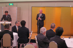 原岡理事長は組合事業について「運営する軽油スタンドの停電対策として、自家発電機の購入に際する長期融資制度の充実にも努めている。女性ドライバーの採用は、仕事サポートセンターと連携して進めたい。昨年は災害が多発した。当組合は災害時の緊急物資輸送で尼崎市と災害協定を結ぶ準備にある」とし、経過と取り組みを報告した。また創立50周年を迎える組合運営についても、「組合員各社も今や2代、3代目と代替わりしている。若い力を取り込み、新しい組合へと求心力を高め、協調力で前進していく」と意気込みを見せた。 来賓の太田啓三・兵庫県トラック協会専務理事は、貨物自動車運送事業法の一部改正等について、また辻本ゆかり・尼崎市危機管理安全局長からは、尼運協との災害協定の締結について共に防災に努めると挨拶。 祝宴は柳内国拡・兵庫県交通共済協同組合専務理事の乾杯発声で開始した。
