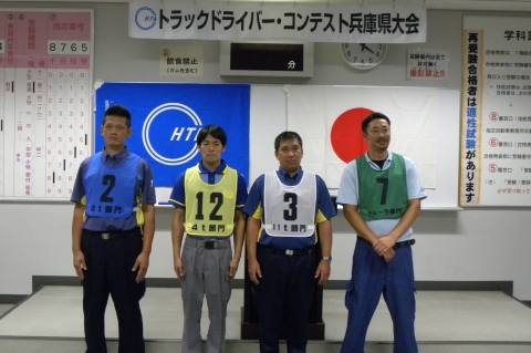 兵庫県トラック協会(福永征秀会長)は7月20日、兵庫県警察本部運転免許試験 場(明石市) で第47回トラックドライバー・コンテスト兵庫県大会を開催した。4 トン、11トン、トレーラ、2トンの4部門に39名が出場し、日頃の腕を競った。 4トン部門は平田和幸氏(日本通運(株)明石航空支店 )が優勝した。平田氏は昨年、一昨年も同部門で優勝し、3年連続の優勝となる。福永征秀・兵ト協会長をはじめ、松崎義廣・神戸運輸監理部兵庫陸運部長、梶野宏和・兵庫県企画県民部交通安全室主幹、中田博・兵庫県警察交通部交通企画課調査官から、兵庫県トラック協会長賞、神戸運輸監理部長賞、兵庫県知事賞、兵庫県警察本部長・兵庫県交通安全協会長賞が贈られた。 松崎義廣・神戸運輸監理部兵庫陸運部長は「表彰の栄誉に輝かれた皆様は、日頃の業務を通じて培われた高度な運転技術、車両の構造に関する知識など専門的な知識を遺憾なく発揮された。難関を突破して栄冠を勝ち取られたのではないかと思う。心から敬意を評する。近年、交通事故は少しずつ、減少の傾向にある。関係者の皆様が交通事故の防止に向けて、積極的に取り組んでこられた結果だと思う。今後とも、自家用車の運転者含めて、すべてのドライバーのお手本となるような安全運転、法令遵守、運転マナーのリードをして頂きたい」と来賓挨拶。 >>2ページ目へ続く
