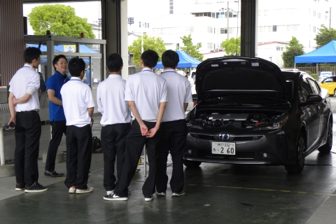 参加した高校生は、記念撮影をはじめ、燃料電池車MIRAIや自動駐車機能を搭載した新型リーフなどの次世代車両、ホンダ・シビックタイプRなどのスポーツカーや学生がレストアしたRA25昭和52年式セリカ、各社大型トラックの展示や、スキャンツールを使った整備と傾斜角度試験の実演などを見学した。板金作業等の体験では、実際の機材を用い、自分たちの手で整備を体感し、自動車整備業全般について理解を深めた。