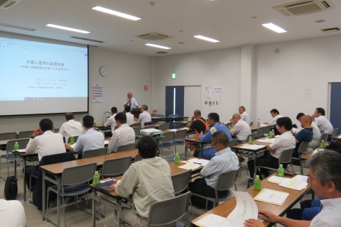 兵庫県自動車整備振興会(西原興一郎会長)は9月18日、姫路自動車整備教育会館(姫路市)で「外国人雇用基礎セミナー」を開催した。講演会は、行政書士安藤国際法務事務所の安藤敏行氏による「外国人技能実習生の受け入れを考える」、日産プリンス兵庫(株) の大森基史サービス部長による「雇用後の生活面等の実務的なサポート」との2部制で実施、会員事業者32人が出席した。講演会では日産プリンス兵庫(株) の大森部長はベトナム人を2名帯同し参加した。
