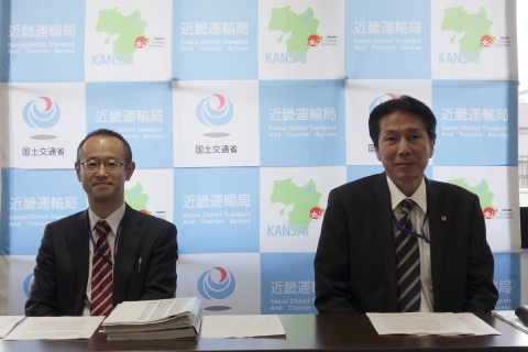 近畿運輸局の末満章悟・自動車交通部長と楠原勇二・自動車監査指導部長の定例記者会見が1月15日に行われた。 新年の抱負について末満部長は「タクシー利用の需要増につながる活性化策を引き続き推進したい。また、今年開催されるオリンピック・パラリンピックなどで訪れる外国人へのインバウンド対策やバリアフリー対応を後押しできればと思う。運転者不足についても、運賃改定による、労働条件の改善などで運転者確保につなげなければならない。また、現在2種免許の取得緩和が検討されているので、若年層のアプローチや女性の活躍、就職氷河期世代へのアプローチなど含めて、運転者確保策について推進したい」と述べた。 楠原部長は「各業界、運転者の不足が深刻な課題となっている。長時間労働の是正やドライバーの処遇改善など労働状況、労働環境を整えて、雇用の促進を図ることが必要と考える。そのためには、適正な運賃を収受し、健全な事業運営が求められる。自動車監査指導部としても、法令等を遵守しない事業者があれば監査 指導を通じて、健全な事業運営を促し、それでも改善されない場合は、速やかに 市場から退出していただくよう厳正に対処する」と新年の抱負を語った。 大阪市域交通圏と神戸市域交通圏が3月末で特定地域の指定を解除され、準特定地域になる。その際の変更点について末満部長は「特定地域については、新規参入による増車が禁止されているが、準特定地域においては、原則毎年8月1日に各地域の需給状況を判断し、供給輸送力の増加は可能の場合には、新規許可や増車等がその増加可能車両数の範囲内で可能となる。現在の特定地域計画については、改めて協議会で準特定地域計画に見直す必要がある」と説明した。 続いて、2月1日から実施されるタクシー運賃改定について「今回の運賃改定の主な理由は、運転者の労働条件の改善が挙げられている。これを踏まえ、タクシー業界として積極的に労働条件の改善に取り組んでいただいて、運転者の確保につなげていただきたい。また、利用者への需要喚起やサービス向上につながる取り組みに推進していただきたい」と期待を述べた。 昨年10月の運賃改定実施が見送られたが、今年2月に実施となった経緯につい て「運輸局としては、本省から『消費税率改定の動向を注視していたところ、10月11月の消費動向調査によれば、消費者態度指数は8月9月から比べて持ち直しているようであると認識していることに加えて、タクシー需要の動向についても事業者にヒアリングをおこなったところ、消費税率改定の影響は限定的と考えられたところである。こうした状況を総合的に検討して、実施時期を判断したものである』と説明をうけている」と語った。 監査関係では、昨年12月24日に街頭監査を行い、法令違反は確認されなかった。楠原部長はこれに対し、「一昨年は11件に対して車内表示や点検ステッカー等で口頭指導をおこった。一昨年と比較すると、一定の改善が図られている。事業者にも引き続き安全管理の徹底をお願いしたい」と語った。