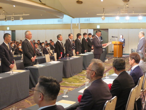 総会後行われた優良組合員表彰式に出席した来賓の松崎義廣・兵庫陸運部長は「道路運送車両法の改正で4月1日から特定認証制度が施行される。大改正であり心配の方々も多いと思うが、説明会や取得講習会を進めている。経過措置として1部猶予もあり、計画的な取得をお願いしたい。本年1月、国交省より、令和3年11月から国産新型車に衝突被害軽減ブレーキの搭載を義務づける発表があった。また、自動運転もレベル3に入ってきた。皆様には、アンテナを高く情報収集に努めていただきたい」と述べ祝辞とした。