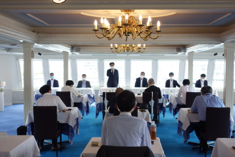 会見の後、事業再開した(株)神戸クルーザーよりレストラン船(コンチェルト)の新型コロナウイルス感染対策と今後の利用客回復に向けた取組について説明があった。