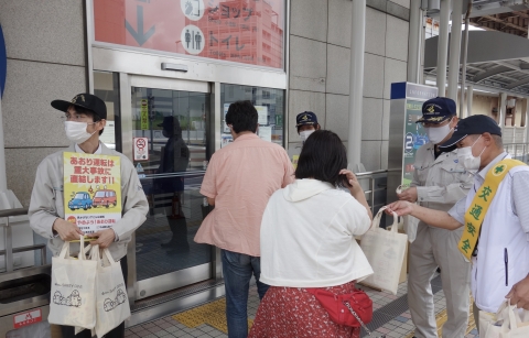 夏の事故防止運動始まる ー 京橋PAでPRグッズ配布