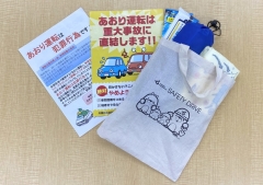 兵庫県交通安全協会(瀧川博司会長)は、兵庫県高速道路交通安全協議会(瀧川博司会長)、兵庫県神戸水上警察署、兵庫県高速道路交通警察隊、阪神高速道路株式会社(管理本部 神戸管理・保全部 交通課)らと7月15日から始まった夏の交通事故防止運動の初日、京橋PAで利用者にあおり運転や飲酒運転等の防止を訴えて、計100個のエコバックに入ったグッズ(安全防止啓発リーフレット・クッション・汗拭きシート・ティッシュ)を配布した。今年はコロナウイルス感染拡大防止のため縮小してキャンペーンが行われた。