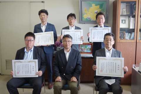 神戸運輸監理部兵庫陸運部(池田博美部長)は6月25日、同部長室で、令和2年度自動車販売関係優良事業者表彰式を開き、日産自動車販売(株)大阪支社(門野五郎支社長)、(株)ホンダクリオ明舞(石川準代表取締役社長)、ネッツトヨタゾナ神戸(株)(坂戸秀彰代表取締役社長)、(株)ホンダ兵庫(山根孝夫代表取締役兼会長)、兵庫スバル自動車(株)(工藤雅道代表取締役社長)、兵庫ダイハツ販売(株)(阿部薫代表取締役社長)の6社に池田部長から表彰状を贈った。この表彰は自動車登録業務の平準化と円滑な登録業務の促進に寄与した功績によるもの。受賞式は新型コロナ感染拡大防止のため、必要最低限の人数で行っており、室内換気、マスク着用の徹底が行われていた。 ※集合写真撮影の際にのみマスクを外していただいております。