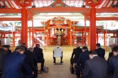 兵庫県トラック協会(福永征秀会長)は9月28日、神戸市中央区の生田神社で第20回交通安全祈願祭、同会館で交通事故犠牲者慰霊祭を開催した。なお新型コロナウイルス感染拡大防止の目的から、出席者は正副会長、各支部部長、事務局ら約25名と縮小して行い、直会は中止とした。 祈願祭は神社本殿で神職の祝詞奏上、神楽豊栄舞の後、福永会長が玉串奉奠。全員に金鈴授与あり、一拝して祈願を終えた。 >>2ページ目へ続く