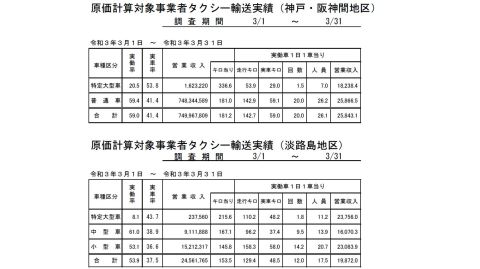 淡路地区の小型日車営収2万3千83円 兵庫県タクシー協会(吉川紀興会長)は先ごろ神戸阪神間地区と淡路島地区の3月度輸送実績を発表した。 神戸阪神間地区の普通車の実車率は前年より1.2ポイントアップして41.4%、実働日車営収は345.3円アップの2万5千866.5円だった。 淡路島地区は中型車で実車率は1.6ポイントアップの38.9%で、日車営収は1883.5円アップの1万6千70.3円、小型車は実車率2.3ポイントアップの36.6%、日車営収は3764.8円アップの2万3千83.9円となった。