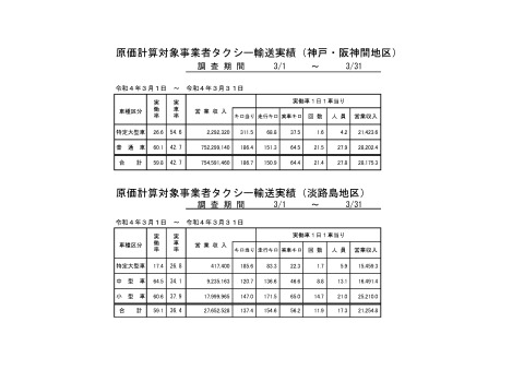 3月度のタクシー輸送実績(神戸・阪神間地区と淡路島地区)