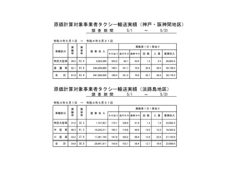 5月度のタクシー輸送実績(神戸・阪神間地区と淡路島地区)