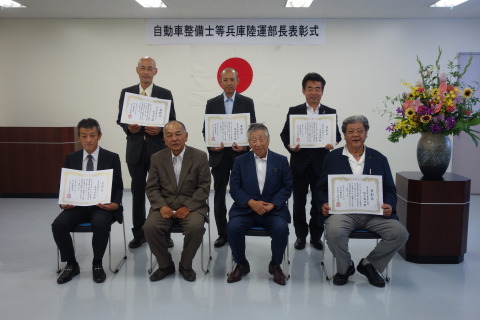 「社会的支援を果たす」(西原会長) 神戸運輸監理部兵庫陸運部(山名生也部長))は7月29日、同魚崎庁舎会議室で、令和4年度自動車整備士等、兵庫陸運部長表彰式を開催。阪上春治氏(株式会社阪上自動車工業所)ら7名(欠席2名)が受賞した。式典で山名部長は、受賞者一人ひとりに賞状を手渡して功労を称えた。 山名部長は式辞で「今月に入り感染が急拡大しており、第7波を懸念する状況となってまいりました。兵庫県内においても、感染者が増加しており、今後、夏の行事や人の移動が多い時期を迎え、日々の生活において自動車を利用して移動する機会が増加し、これに伴って、自動車の安全確保において重要となる点検整備の機会も増加していくので、感染拡大には十分警戒が必要です。まずは、基本的な感染対策の徹底をお願いします」と感染対策の協力依頼を求めた。 続けて、「自動車技術の発展は日進月歩で、交通事故削減の切り札として登場した「安全運転サポート車」は、新車乗用車の搭載率が90%になるまで普及しております。 また、カーボンニュートラルを目指し政府は、2035年までに国内の新車販売をすべて電動化するとした目標を掲げたところで、さらに、自動車メーカーでは各社コネクテッドカーの普及に力を注いでいます。皆さま方には、最新技術を搭載する自動車の機能をメンテナンス面から支援し、さらなる安全安心の車社会を支える柱のひとりとなっていただきたいと思っております。技術の向上に努められながら、今後とも永年培われました豊富な知識、優れた技能を十二分に発揮していただくとともに、併せて後輩の指導・育成にご尽力を頂き、自動車ユーザーから信頼される技術者としてご活躍され、自動車整備業界の一層のご発展に寄与されることを願っています」と期待を込めて称えた。 続いて来賓祝辞で西原興一朗・兵庫県自動車整備振興会会長は「皆様方は長年自動車整備関連業界において、安全の確保と環境の保全という大きな社会的責任を果たされており、他の整備士の模範となることです。近年は、先進技術を搭載した車両が続々と登場し、それに伴い手を挙げて志願する特定整備制度が施行されました。今後も自動車検査場の電子化、OBD検査の導入など、本体制の範囲は多岐にわたり、整備事業者の役割がこれまで以上に重要となります。本日栄えある表彰に寄与された皆様方も、自助努力を惜しむことなく自動車の安全確保と環境保全という社会的支援を果たすとともに、時代に即応した体制作りに邁進していただきたいと考えております」と祝辞を述べた。 続けて、受賞者を代表して、阪上春治氏(株式会社阪上自動車工業所)が「本日の栄誉を胸に、新技術の習得に精進し、日常業務を通じて安全安心の確保と環境保全に努めて、人間的にも一層の飛躍に向け邁進してまいります」と謝辞を述べた。 なお、受賞者は以下のみなさん(敬称略) 岩本元宏((株)西村モータース)▽阪上春治((株) 阪上自動車工業所)▽松下忠司((株)神戸マツダ)▽澤池隆史((株)神戸マツダ)▽三木秀典((株)神戸マツダ)▽山鹿延也((株)IMPALA)▽大垣道明((株)西村モータース)