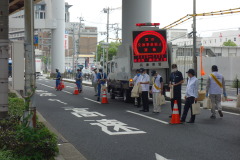兵庫県交通安全協会(塚本哲夫会長)は、兵庫県高速道路交通安全協議会(塚本哲夫会長)、兵庫県神戸水上警察署、兵庫県高速道路交通警察隊、阪神高速道路株式会社(管理本部 神戸管理・保全部 交通課)らと7月15日から、夏の交通事故防止運動を開始した。初日、京橋PA入口付近で、利用者にあおり運転や飲酒運転等の防止を訴えて、エコバックに入ったグッズ(安全防止啓発チラシ・トート・除菌ウェットティッシュ・マスク)を配布した。 重点項目は、子どもや高齢者等の歩行者の安全確保、高齢運転者等の安全運転意識の向上、自転車の交通安全、飲酒運転等の悪質・危険な運転の根絶、全ての座席のシートベルトの正しい着用と、チャイルドシートの適正な使用の徹底、の5項目である。 開催にあたり、山本泰司・阪神高速道路株式会社神戸管理保全部長より「夏の行楽シーズン本番を迎え、お客様が行楽地へ出かける際に阪神高速道路をご利用していただく機会が増えてまいります。そのような中でも、ご利用いただくお客様が悲惨な交通事故に遭わないよう、本日の啓発活動を実施したいと思っております。当社といたしましては、さらなるお客様の安全・安心・快適のため、ハード対策とともに、交通安全啓発活動にも粘り強く取り組んで参る必要がある認識です。本日は限られた時間の中で、一人でも多くの方に情報発信をできればと思いますので、ご協力のほどよろしくお願いいたします」とあいさつした。 続けて、松本博之・兵庫県警察本部交通部高速道路交通警察隊副隊長より「交通量が増える事故が多い時期ということで、夏特有の事故の発生多発が懸念される現状があります。そのような情勢の中で、本日から夏の交通事故防止運動が24日まで実施されます。この期間だけという訳ではないですが、特に高速道路を利用されるドライバーに対して、交通安全意識の高揚を掴んでいただき、事故の減少というところで図っていきたい。事故防止運動の重点、それから緊急時の三原則。こういうところをドライバーに伝えて、益々事故防止というところで図っていきたいと考えておりますので、今後ともよろしくお願いします」と協力を求めた。 なお、夏の交通事故防止運動は7月15日から24日まで実施される。