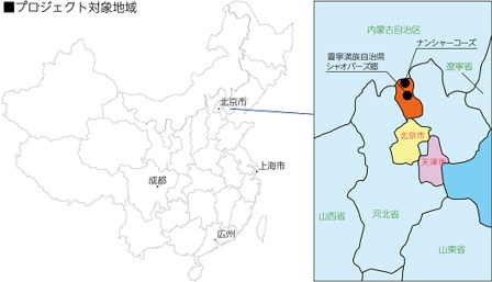 本プロジェクトは、中国においてトヨタが2001年より10年間シャオバーズ郷で実施した植林活動と同様、北京・天津への水源地であり北京を襲う砂嵐の発生地の一つである豊寧満族自治県を含む河北省北部の砂漠化防止を目的とし、地域住民の植林収益による経済的自立を目指す。今回は、特に深刻な砂漠化進行地域であるナンシャーコーズ区域において3年間で150ヘクタールに植林する計画である。