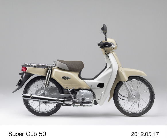 今回のスーパーカブ50は、“ニューベーシックカブ”を開発コンセプトに、装備を充実させながら、さらに使い勝手を高めるとともに、お求めやすい価格を目指したモデルです。 エンジンは、低フリクション技術を多岐にわたって採用した高効率の空冷・4ストローク・単気筒50ccを搭載。低・中回転域を重視したトルク特性によって、荷物積載時などで力強い走りを実現しています。また、発進と変速でそれぞれ独立したクラッチ機構を備えた2段クラッチシステムをスーパーカブ50に初採用したことで、変速時のショックを軽減しています。 車体は、剛性に優れたバックボーンタイプのパイプフレームを新たに採用。従来モデルのカスタムタイプに比べホイールベースを35mm延長したことなどにより、荷物積載時のより安定した走行に寄与しています。 デザインは、本年3月に発売した「スーパーカブ110」と同様に、伝統的でオリジナリティーのあるスタイリングをベースに、シンプル、フレンドリー、質実を表現した“丸みのある四角”をテーマとして、さまざまなライフシーンにマッチするスタイリングとしています。 生産は、中国の新大洲本田摩托有限公司で行い、調達から生産まで効率化を図ることで、メーカー希望小売価格を従来モデルのカスタムタイプ(4速ミッション、セルフ式スターター装備)に比べ48,300円(消費税込み)安く設定することができ、よりお求めやすい価格としました。 |