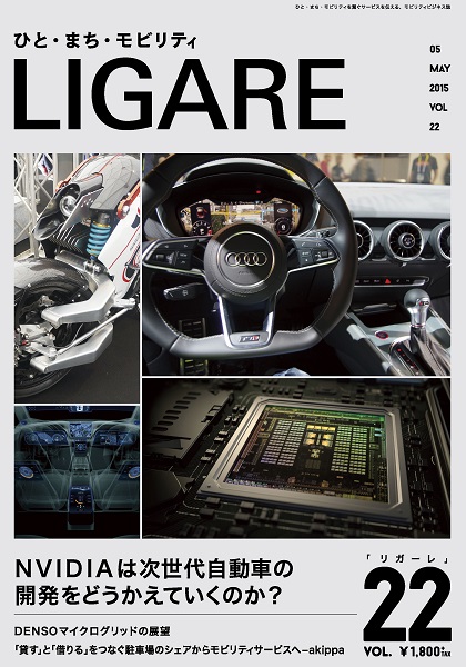ひと・まち・モビリティをより豊かにすることを考えています。 人の移動の質の向上はQOLの向上につながるをコンセプトに、人の移動を「身近で、楽しく、オシャレに」するビジネスやその種をいち早く伝えています。 これから私たちは「移動をどうデザインし、生活を豊かにしていくのか?」 この疑問を常にもち取材活動を行っています。 自動車産業を中心としたモビリティサービスと「ひとの移動のデザイン」について考えている方にぜひ。 【Special】 04 NVIDIA 「NVIDIA DRIVE」は次世代自動車の開発をどう変えていくのか? 12 DENSO マイクログリッドへの展望 【Business Report】 20 「貸す」と「借りる」をつなぐ 駐車場のシェアからモビリティサービスへ-akippa 24 Re-Think Mobility 次世代の自動車産業を担う企業とは-IBM 28 SIP-adus 自動走行システム分野の動向 34 EV TAIWAN 2015 Taiwan International Electric Vehicle Show 42 zecOO デザイナー、製造者、エンジニアたちによるものづくりへの想いの結晶 50 グローバルモビリティニュース 58 ニュースファイル |